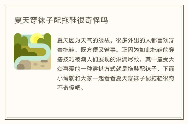 夏天因为天气的缘故,很多外出的人都喜欢穿着拖鞋,既方便又省事。正因为如此拖鞋的穿搭技巧被潮人们展现的淋漓尽致,其中最受大众喜爱的一种穿搭方式就是拖鞋配袜子,下面小编就和大家一起看看夏天穿袜子配拖鞋很奇不奇怪吧。
