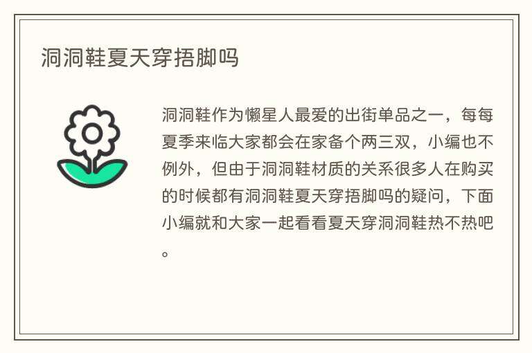 洞洞鞋作为懒星人最爱的出街单品之一,每每夏季来临大家都会在家备个两三双,小编也不例外,但由于洞洞鞋材质的关系很多人在购买的时候都有洞洞鞋夏天穿捂脚吗的疑问,下面小编就和大家一起看看夏天穿洞洞鞋热不热吧。
