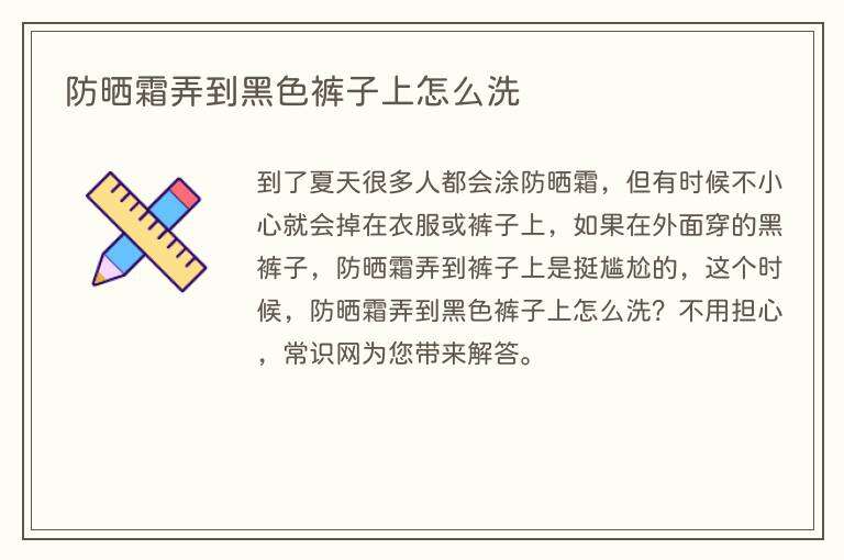 到了夏天很多人都会涂防晒霜,但有时候不小心就会掉在衣服或裤子上,如果在外面穿的黑裤子,防晒霜弄到裤子上是挺尴尬的,这个时候,防晒霜弄到黑色裤子上怎么洗?不用担心,常识网为您带来解答。