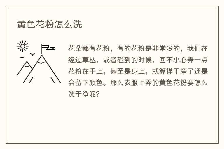 花朵都有花粉,有的花粉是非常多的,我们在经过草丛,或者碰到的时候,回不小心弄一点花粉在手上,甚至是身上,就算掸干净了还是会留下颜色。那么衣服上弄的黄色花粉要怎么洗干净呢?