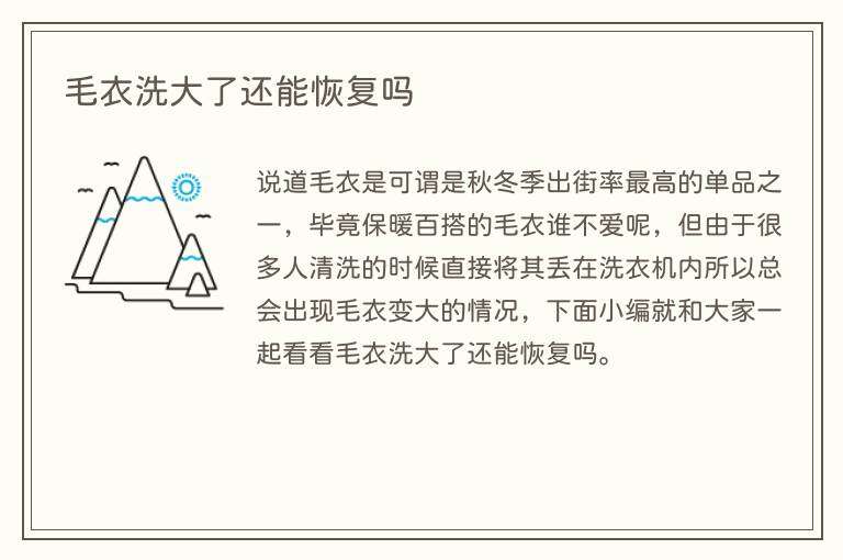 说道毛衣是可谓是秋冬季出街率最高的单品之一,毕竟保暖百搭的毛衣谁不爱呢,但由于很多人清洗的时候直接将其丢在洗衣机内所以总会出现毛衣变大的情况,下面小编就和大家一起看看毛衣洗大了还能恢复吗。