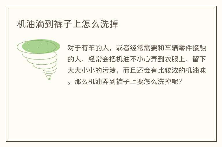对于有车的人,或者经常需要和车辆零件接触的人,经常会把机油不小心弄到衣服上,留下大大小小的污渍,而且还会有比较浓的机油味。那么机油弄到裤子上要怎么洗掉呢?