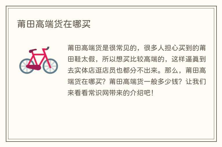 莆田高端货是很常见的,很多人担心买到的莆田鞋太假,所以想买比较高端的,这样逼真到去实体店逛店员也都分不出来。那么,莆田高端货在哪买?莆田高端货一般多少钱?让我们来看看常识网带来的介绍吧!
