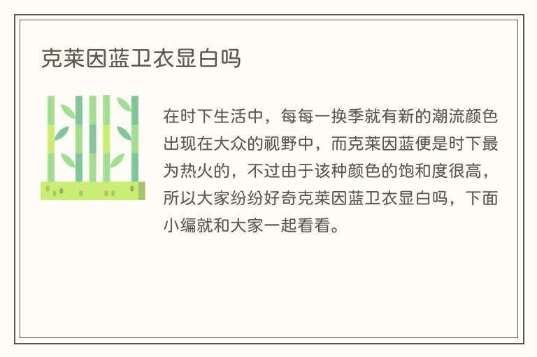 在时下生活中,每每一换季就有新的潮流颜色出现在大众的视野中,而克莱因蓝便是时下最为热火的,不过由于该种颜色的饱和度很高,所以大家纷纷好奇克莱因蓝卫衣显白吗,下面小编就和大家一起看看。