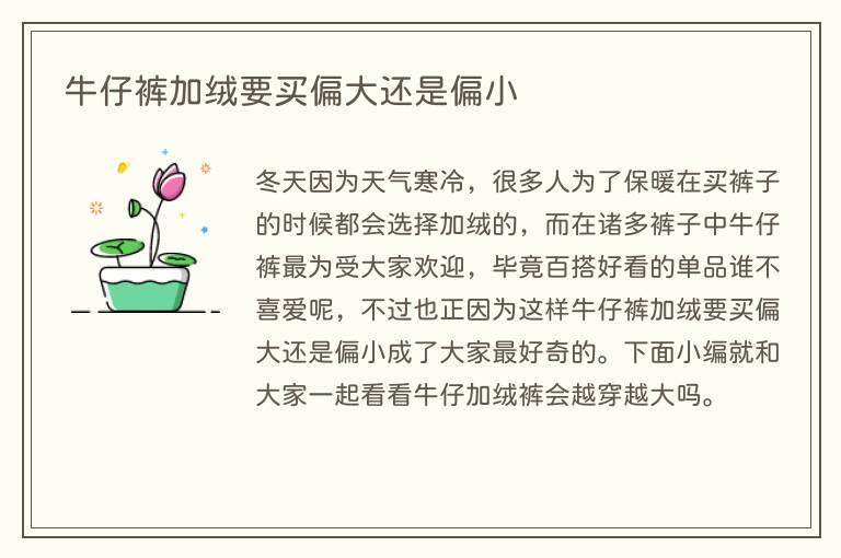冬天因为天气寒冷,很多人为了保暖在买裤子的时候都会选择加绒的,而在诸多裤子中牛仔裤最为受大家欢迎,毕竟百搭好看的单品谁不喜爱呢,不过也正因为这样牛仔裤加绒要买偏大还是偏小成了大家最好奇的。下面小编就和大家一起看看牛仔加绒裤会越穿越大吗。