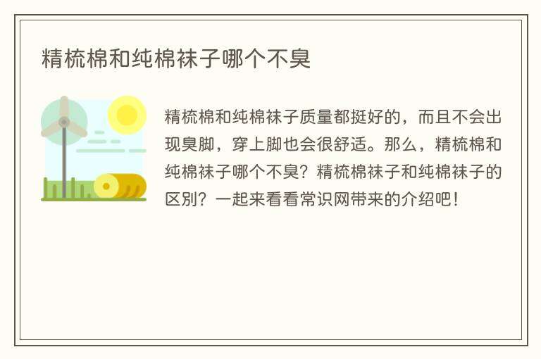 精梳棉和纯棉袜子质量都挺好的,而且不会出现臭脚,穿上脚也会很舒适。那么,精梳棉和纯棉袜子哪个不臭?精梳棉袜子和纯棉袜子的区别?一起来看看常识网带来的介绍吧!