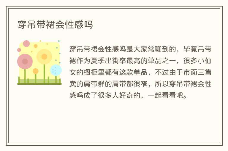 穿吊带裙会性感吗是大家常聊到的,毕竟吊带裙作为夏季出街率最高的单品之一,很多小仙女的橱柜里都有这款单品,不过由于市面三售卖的肩带群的肩带都很窄,所以穿吊带裙会性感吗成了很多人好奇的,一起看看吧。