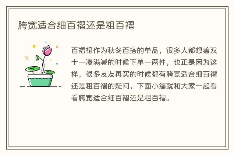 百褶裙作为秋冬百搭的单品,很多人都想着双十一凑满减的时候下单一两件,也正是因为这样,很多友友再买的时候都有胯宽适合细百褶还是粗百褶的疑问,下面小编就和大家一起看看胯宽适合细百褶还是粗百褶。