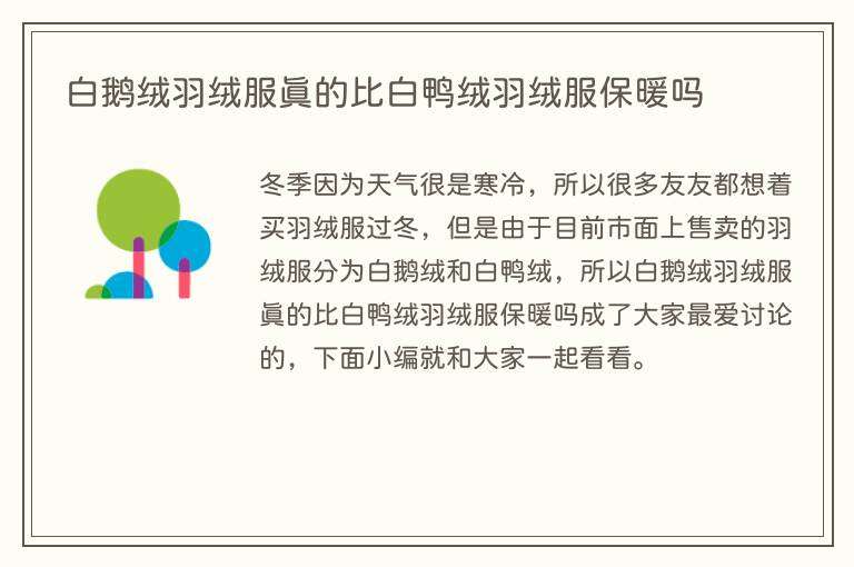 白鹅绒羽绒服真的比白鸭绒羽绒服保暖吗
