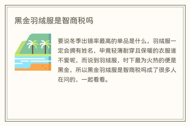 要说冬季出镜率最高的单品是什么,羽绒服一定会拥有姓名,毕竟轻薄耐穿且保暖的衣服谁不爱呢,而说到羽绒服,时下最为火热的便是黑金,所以黑金羽绒服是智商税吗成了很多人在问的,一起看看。