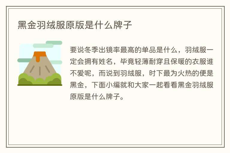 要说冬季出镜率最高的单品是什么,羽绒服一定会拥有姓名,毕竟轻薄耐穿且保暖的衣服谁不爱呢,而说到羽绒服,时下最为火热的便是黑金,下面小编就和大家一起看看黑金羽绒服原版是什么牌子。