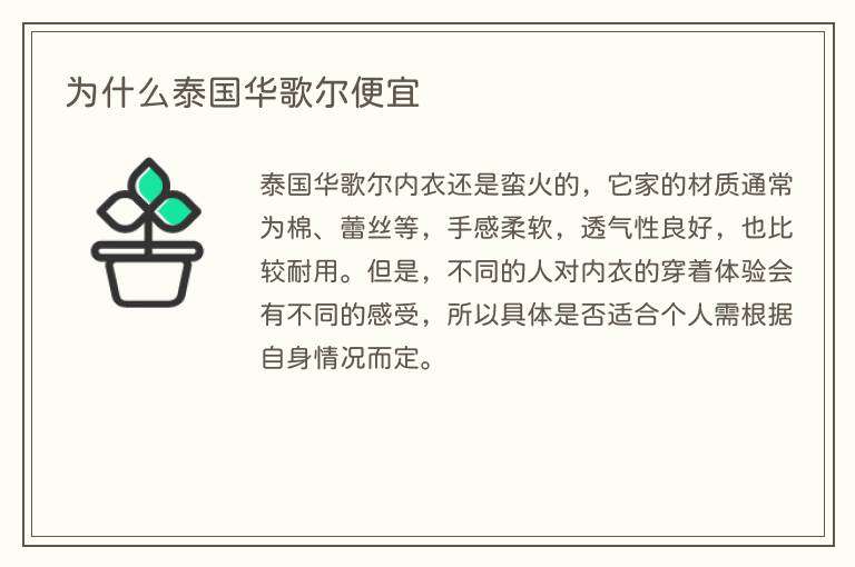 为什么泰国华歌尔便宜