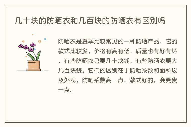 几十块的防晒衣和几百块的防晒衣有区别吗