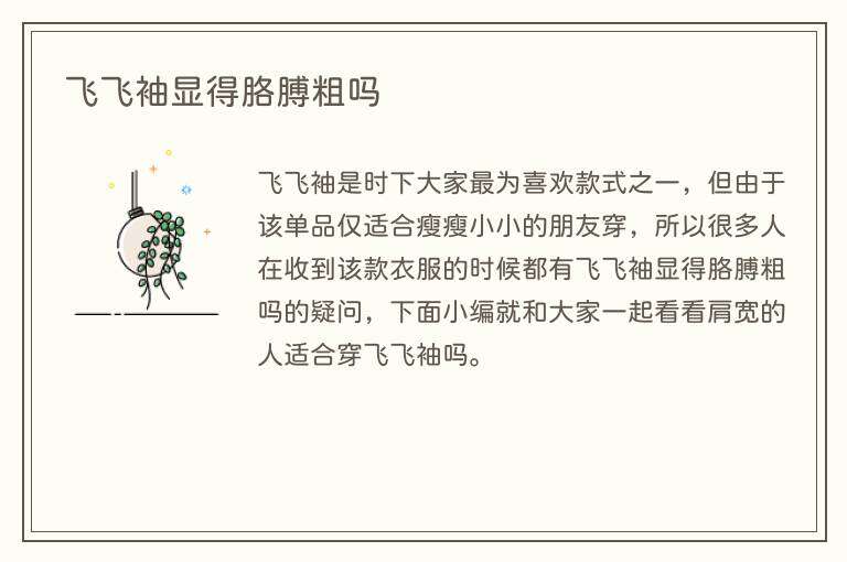 飞飞袖是时下大家最为喜欢款式之一,但由于该单品仅适合瘦瘦小小的朋友穿,所以很多人在收到该款衣服的时候都有飞飞袖显得胳膊粗吗的疑问,下面小编就和大家一起看看肩宽的人适合穿飞飞袖吗。