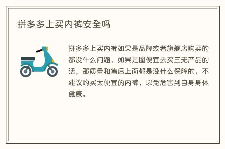 拼多多上买内裤如果是品牌或者旗舰店购买的都没什么问题,如果是图便宜去买三无产品的话,那质量和售后上面都是没什么保障的,不建议购买太便宜的内裤,以免危害到自身身体健康。
