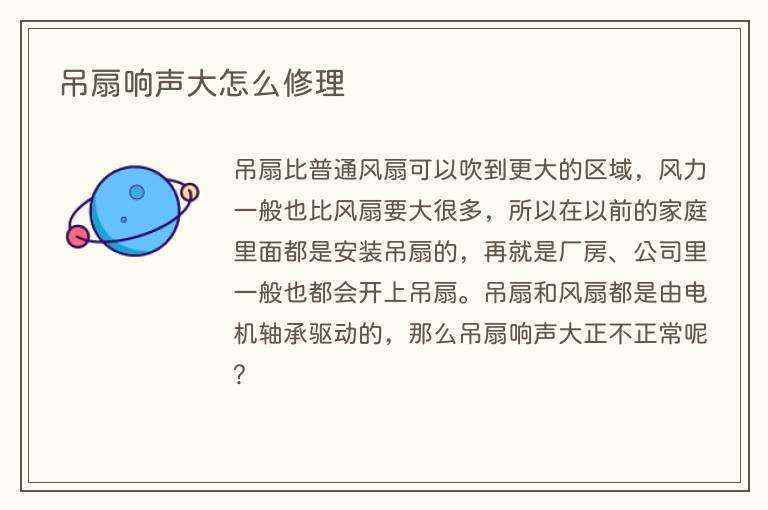 吊扇比普通风扇可以吹到更大的区域,风力一般也比风扇要大很多,所以在以前的家庭里面都是安装吊扇的,再就是厂房、公司里一般也都会开上吊扇。吊扇和风扇都是由电机轴承驱动的,那么吊扇响声大正不正常呢?