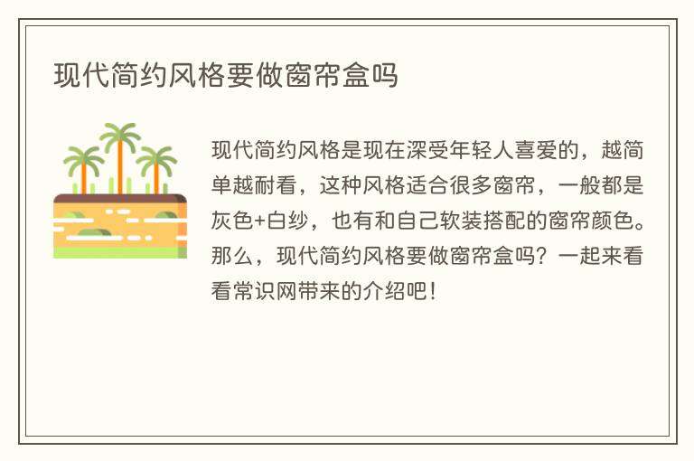 现代简约风格是现在深受年轻人喜爱的,越简单越耐看,这种风格适合很多窗帘,一般都是灰色+白纱,也有和自己软装搭配的窗帘颜色。那么,现代简约风格要做窗帘盒吗?一起来看看常识网带来的介绍吧!