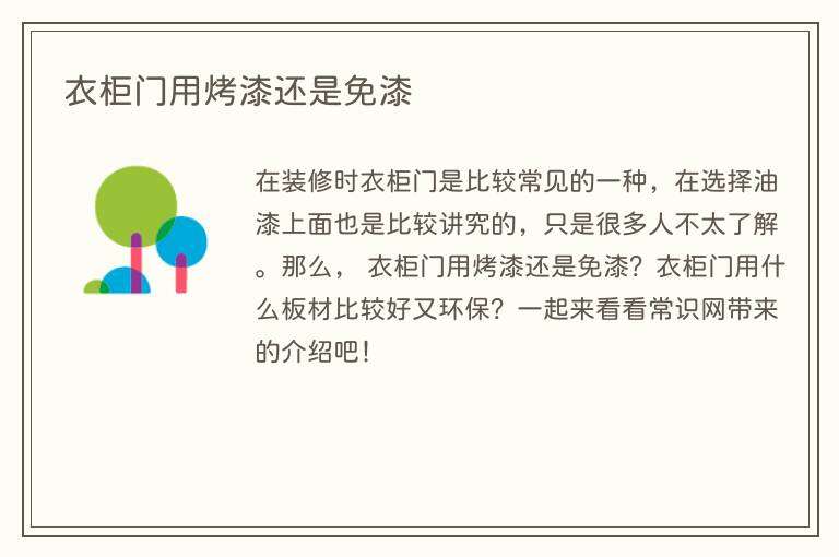 在装修时衣柜门是比较常见的一种,在选择油漆上面也是比较讲究的,只是很多人不太了解。那么, 衣柜门用烤漆还是免漆?衣柜门用什么板材比较好又环保?一起来看看常识网带来的介绍吧!