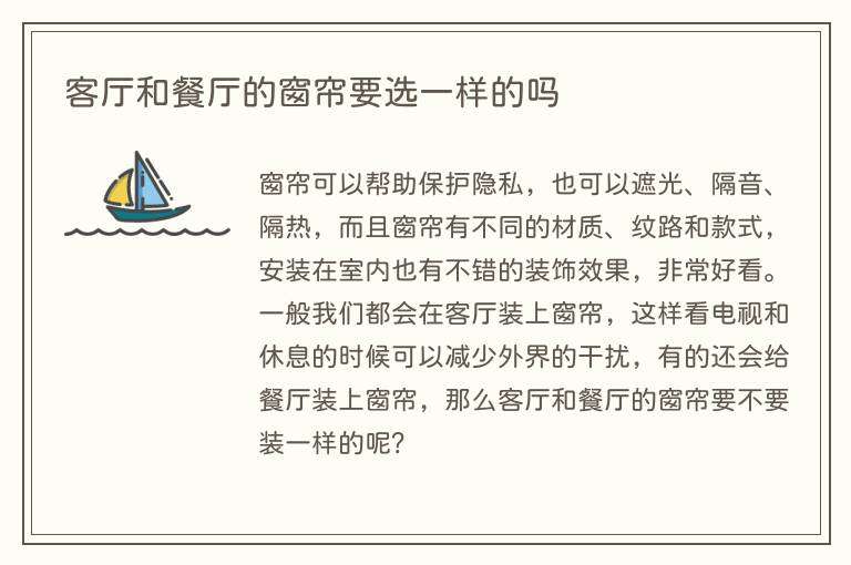 客厅和餐厅的窗帘要选一样的吗