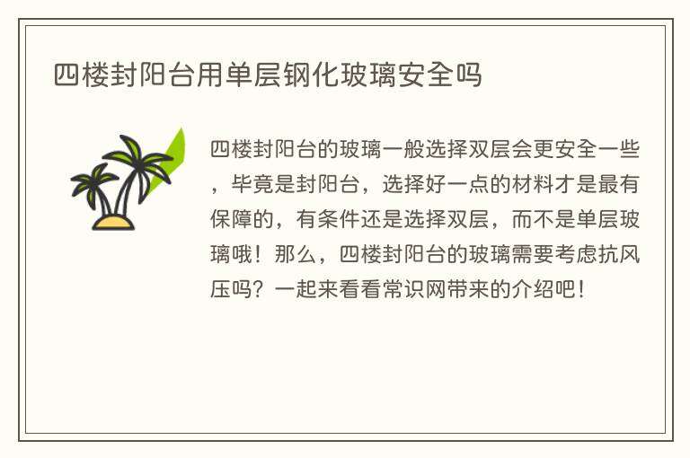 四楼封阳台用单层钢化玻璃安全吗