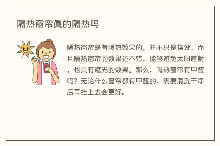 隔热窗帘是有隔热效果的,并不只是摆设,而且隔热窗帘的效果还不错,能够避免太阳直射,也具有遮光的效果。那么,隔热窗帘有甲醛吗?无论什么窗帘都有甲醛的,需要清洗干净后再挂上去会更好。