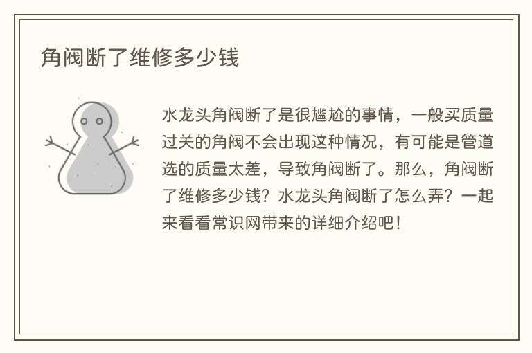 角阀断了维修多少钱
