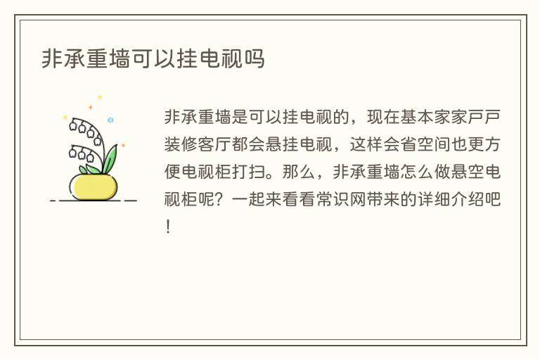 非承重墙是可以挂电视的,现在基本家家户户装修客厅都会悬挂电视,这样会省空间也更方便电视柜打扫。那么,非承重墙怎么做悬空电视柜呢?一起来看看常识网带来的详细介绍吧!