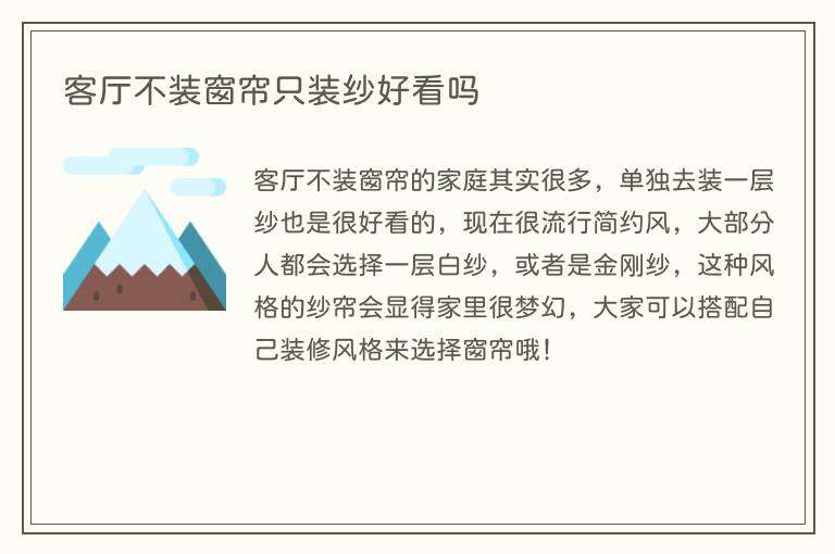 客厅不装窗帘的家庭其实很多,单独去装一层纱也是很好看的,现在很流行简约风,大部分人都会选择一层白纱,或者是金刚纱,这种风格的纱帘会显得家里很梦幻,大家可以搭配自己装修风格来选择窗帘哦!