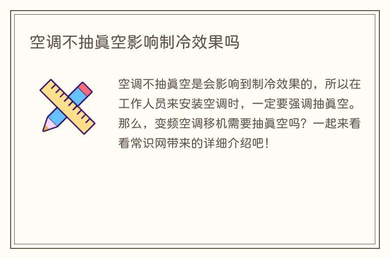 空调不抽真空是会影响到制冷效果的,所以在工作人员来安装空调时,一定要强调抽真空。那么,变频空调移机需要抽真空吗?一起来看看常识网带来的详细介绍吧!