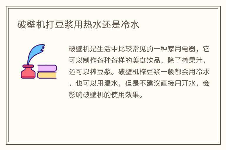 破壁机打豆浆用热水还是冷水