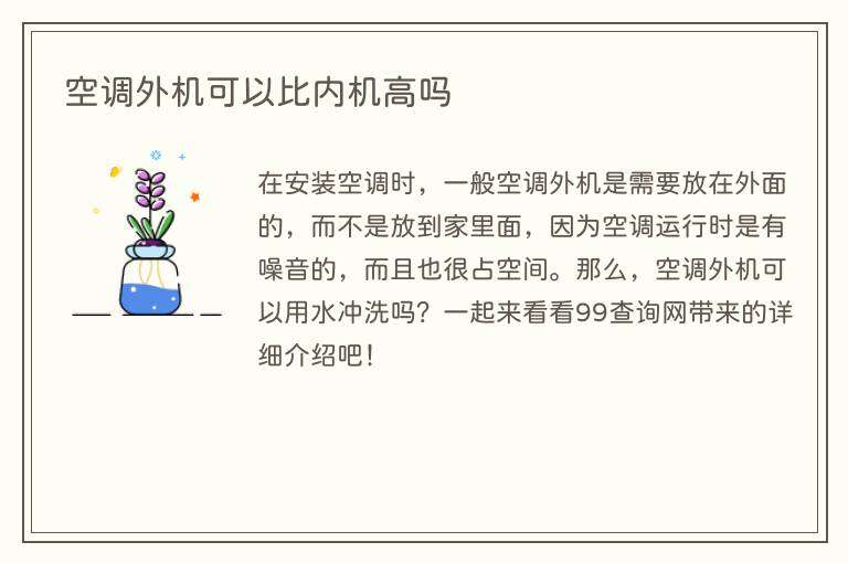 在安装空调时,一般空调外机是需要放在外面的,而不是放到家里面,因为空调运行时是有噪音的,而且也很占空间。那么,空调外机可以用水冲洗吗?一起来看看99查询网带来的详细介绍吧!