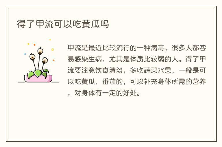 得了甲流可以吃黄瓜吗