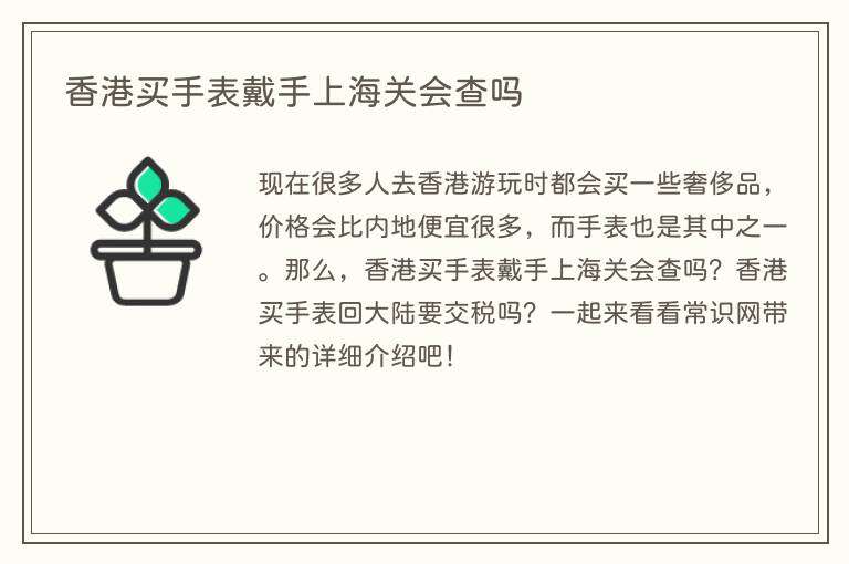 现在很多人去香港游玩时都会买一些奢侈品,价格会比内地便宜很多,而手表也是其中之一。那么,香港买手表戴手上海关会查吗?香港买手表回大陆要交税吗?一起来看看常识网带来的详细介绍吧!