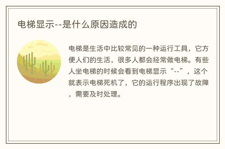 电梯是生活中比较常见的一种运行工具,它方便人们的生活,很多人都会经常做电梯。有些人坐电梯的时候会看到电梯显示“–”,这个就表示电梯死机了,它的运行程序出现了故障,需要及时处理。