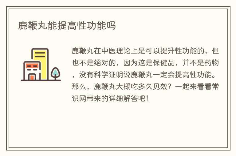 据传统中医理论,鹿鞭丸可以提高男性的性功能。然而,目前还没有足够的科学研究来证明鹿鞭丸确实可以提高性功能。