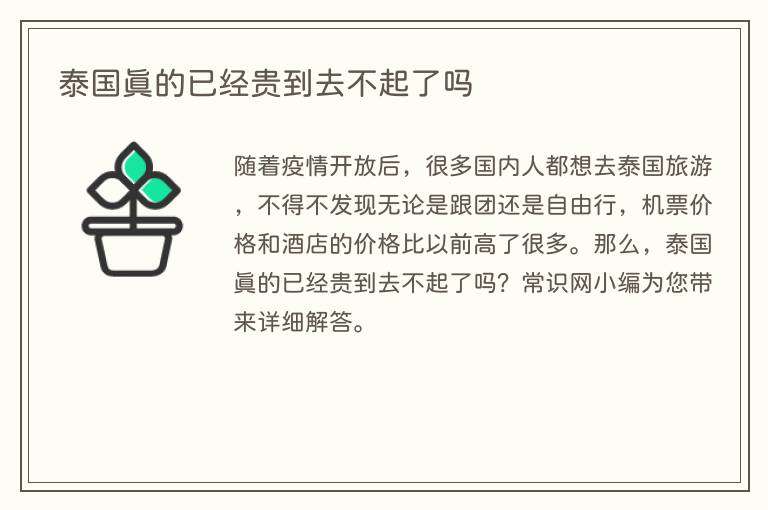 随着疫情开放后,很多国内人都想去泰国旅游,不得不发现无论是跟团还是自由行,机票价格和酒店的价格比以前高了很多。那么,泰国真的已经贵到去不起了吗?常识网小编为您带来详细解答。