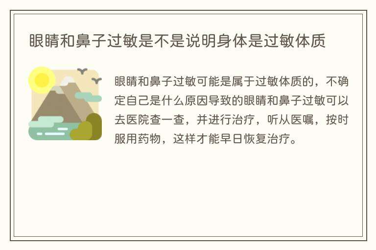 眼睛和鼻子过敏可能是属于过敏体质的,不确定自己是什么原因导致的眼睛和鼻子过敏可以去医院查一查,并进行治疗,听从医嘱,按时服用药物,这样才能早日恢复治疗。