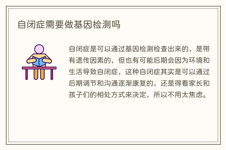 自闭症是可以通过基因检测检查出来的,是带有遗传因素的,但也有可能后期会因为环境和生活导致自闭症,这种自闭症其实是可以通过后期调节和沟通逐渐康复的,还是得看家长和孩子们的相处方式来决定,所以不用太焦虑。