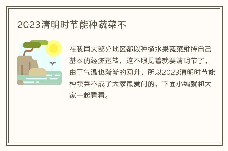 在我国大部分地区都以种植水果蔬菜维持自己基本的经济运转,这不眼见着就要清明节了,由于气温也渐渐的回升,所以2023清明时节能种蔬菜不成了大家最爱问的,下面小编就和大家一起看看。