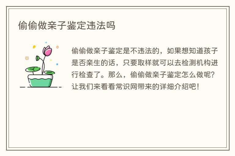 偷偷做亲子鉴定是不违法的,如果想知道孩子是否亲生的话,只要取样就可以去检测机构进行检查了。那么,偷偷做亲子鉴定怎么做呢?让我们来看看常识网带来的详细介绍吧!
