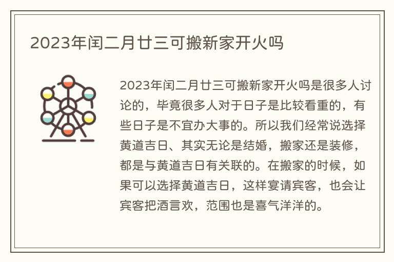 2023年闰二月廿三可搬新家开火吗