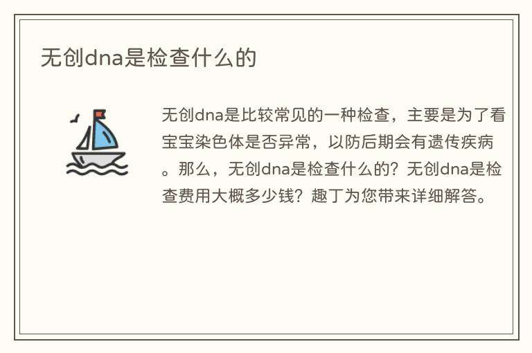 无创dna是比较常见的一种检查,主要是为了看宝宝染色体是否异常,以防后期会有遗传疾病。那么,无创dna是检查什么的?无创dna是检查费用大概多少钱?趣丁为您带来详细解答。
