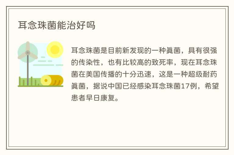 耳念珠菌是目前新发现的一种真菌,具有很强的传染性,也有比较高的致死率,现在耳念珠菌在美国传播的十分迅速,这是一种超级耐药真菌,据说中国已经感染耳念珠菌17例,希望患者早日康复。