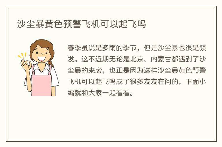 春季虽说是多雨的季节,但是沙尘暴也很是频发。这不近期无论是北京、内蒙古都遇到了沙尘暴的来袭,也正是因为这样沙尘暴黄色预警飞机可以起飞吗成了很多友友在问的,下面小编就和大家一起看看。