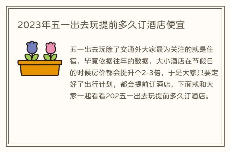 五一出去玩除了交通外大家最为关注的就是住宿,毕竟依据往年的数据,大小酒店在节假日的时候房价都会提升个2-3倍,于是大家只要定好了出行计划,都会提前订酒店,下面就和大家一起看看202五一出去玩提前多久订酒店。
