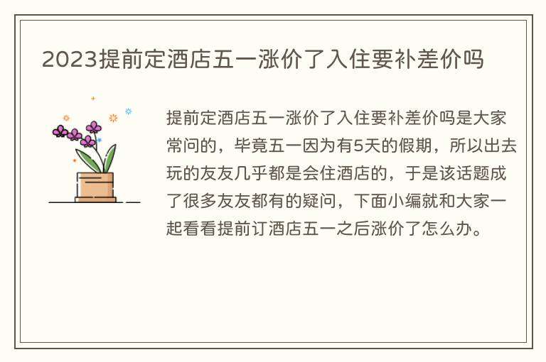 提前定酒店五一涨价了入住要补差价吗是大家常问的,毕竟五一因为有5天的假期,所以出去玩的友友几乎都是会住酒店的,于是该话题成了很多友友都有的疑问,下面小编就和大家一起看看提前订酒店五一之后涨价了怎么办。