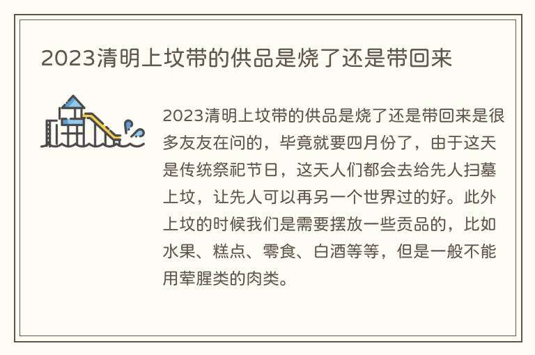 2023清明上坟带的供品是烧了还是带回来