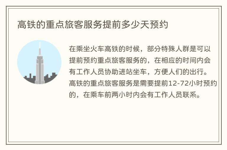 高铁的重点旅客服务提前多少天预约