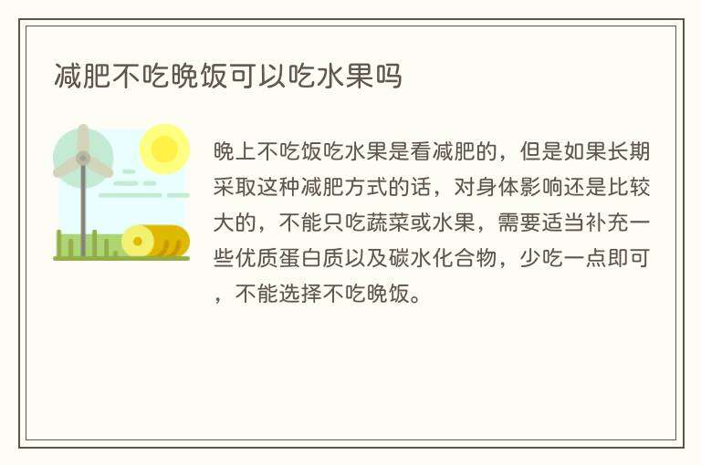 晚上不吃饭吃水果是看减肥的,但是如果长期采取这种减肥方式的话,对身体影响还是比较大的,不能只吃蔬菜或水果,需要适当补充一些优质蛋白质以及碳水化合物,少吃一点即可,不能选择不吃晚饭。