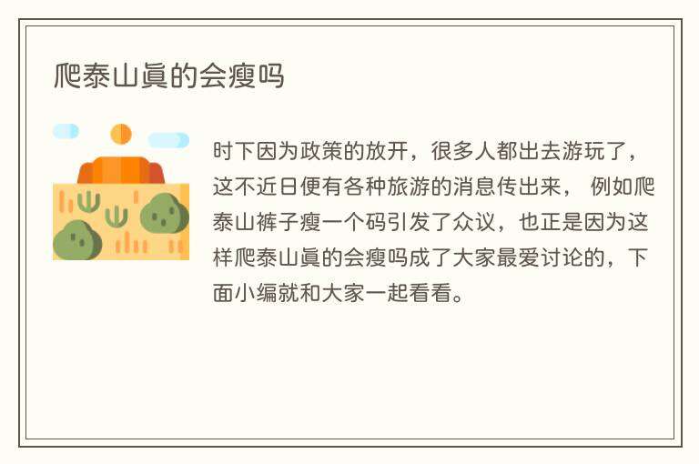时下因为政策的放开,很多人都出去游玩了,这不近日便有各种旅游的消息传出来, 例如爬泰山裤子瘦一个码引发了众议,也正是因为这样爬泰山真的会瘦吗成了大家最爱讨论的,下面小编就和大家一起看看。